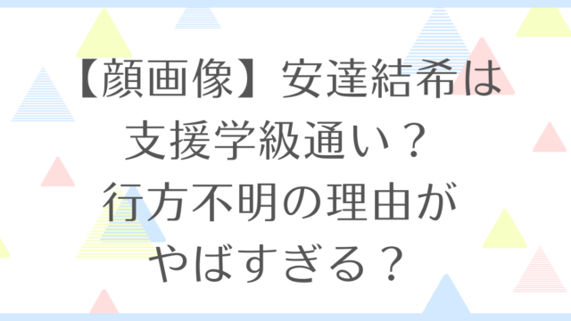 【顔画像】安達結希は支援学級通い?行方不明の理由がやばすぎる?